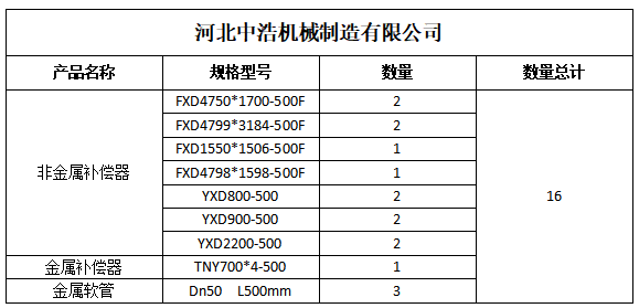 尊敬的李經理,感謝您對河北中浩 產品信任與選擇。很高興通知您,您在河北中浩訂購非金屬蒙皮膨脹節、金屬波紋補償器、金屬波紋軟管等產品, 已經完成生產、檢驗、包裝等全部工作,請您做好收貨準備,到貨后及時查驗。